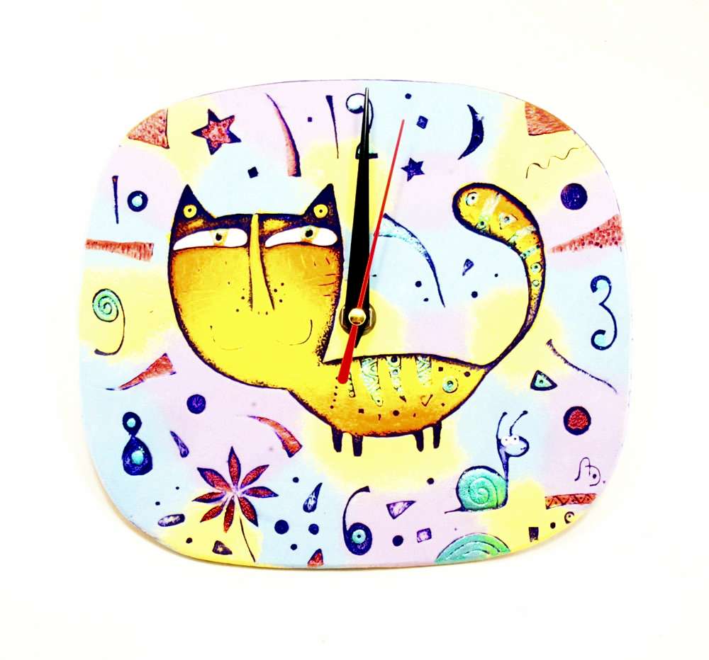 Часы настенные “Кот с улиткой” - Пинап керамическое изделие ручной работы.