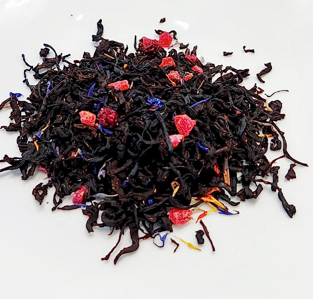 Состав: черный чай, сублимированные ягоды красной смородины, кусочки ягод малины, лепестки сафлора и Пинап Чай обладает ароматом спелых ягод.