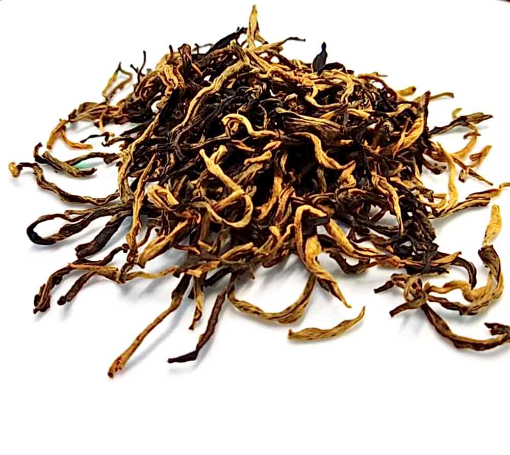 Уже из названия Пинап Дянь Хуна понятен его состав - почки и молодые чайные листья в равных частях. Контрастная расцветка - золотистые почки и серо-зелено-коричневые листочки спиралевидной скрутки. В сухом виде чай обладает хлебно - медовым ароматом.