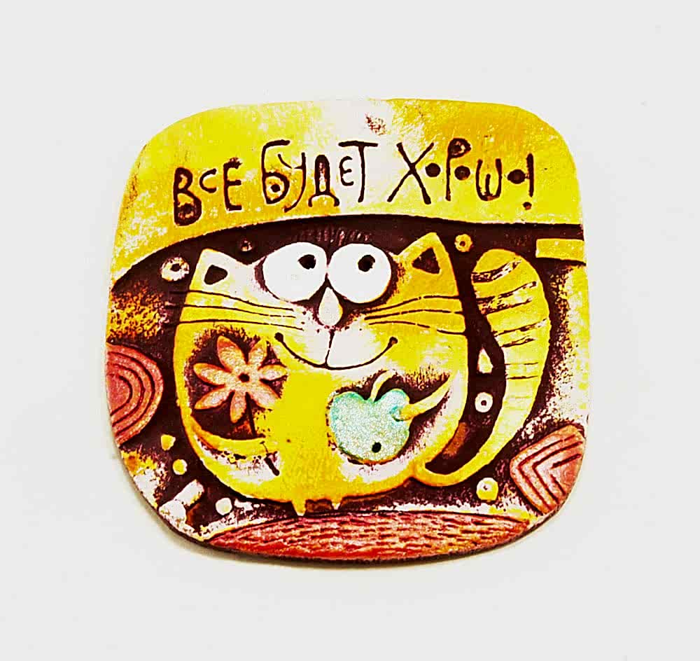 Пинап «Кот - Все будет хорошо» - авторский сувенир ручной работы.