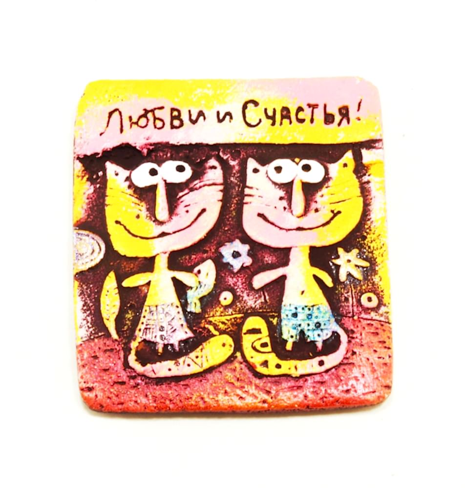 Каждое изделие ручной работы уникально, его точное воспроизведение невозможно. Поэтому, если Вас интересует два Пинап магнита «Коты - Любви и счастья» или более, они будут незначительно отличаться друг от друга.