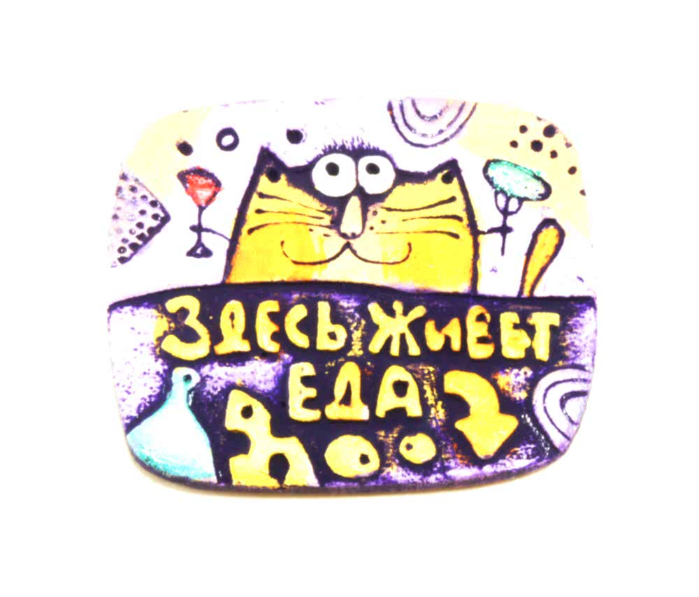 Пинап изделие ручной работы уникально, его точное воспроизведение невозможно. Поэтому, если Вас интересует два сувенирных магнита «Здесь живет еда» или более, они будут незначительно отличаться друг от друга.