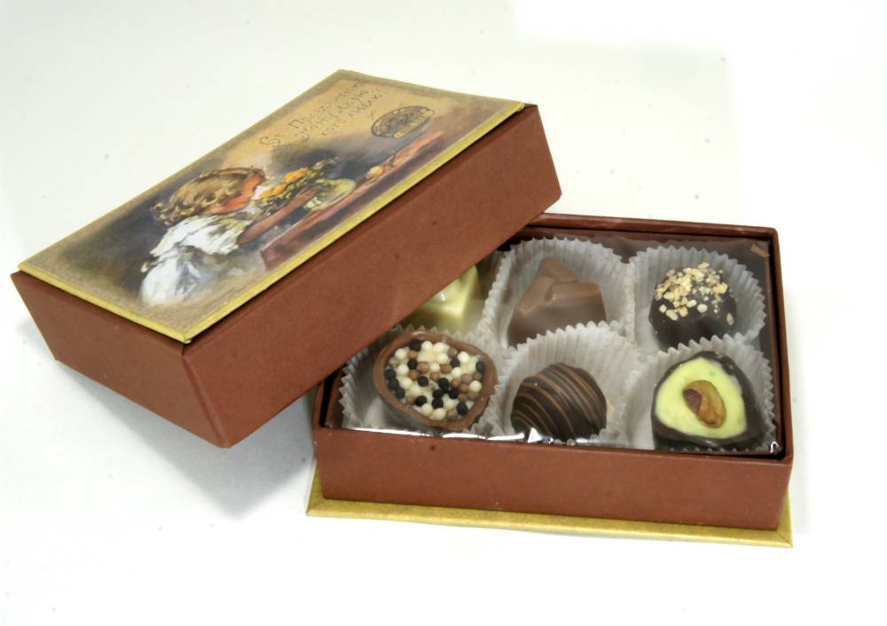 Набор конфет ручной работы из серии “XIX век” в коробке ручной работы. Отличительной особенностью серии товаров “XIX век” является высокое качество, добротность во всем - от упаковки до наполнения. Конфеты сделаны из шоколада бельгийского производства. Коробка - картонаж (ручное изготовление изящной упаковки из картона). Как правило, такая коробка впоследствии Пинап в качестве шкатулки.