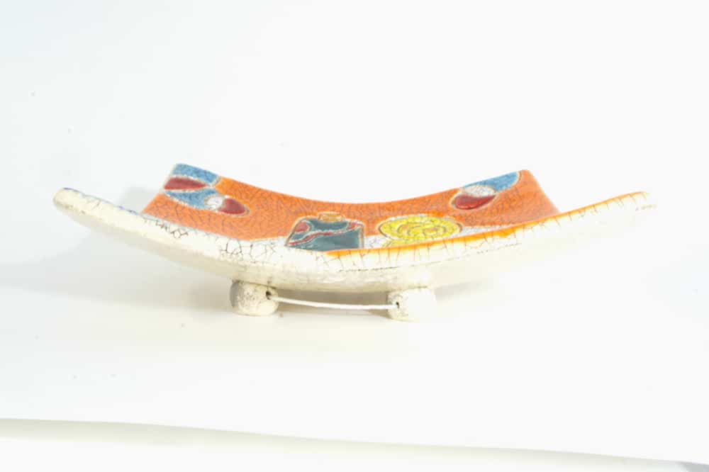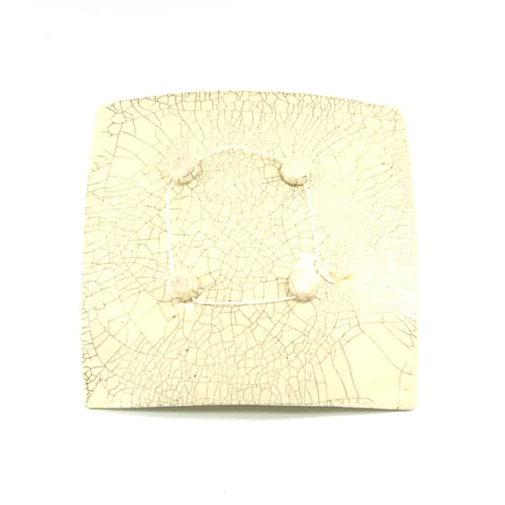 Форма из гипса заполняется подготовленным пластом шамотной глины. Глина уплотняется и выравнивается до требуемой толщины. Заполненная форма выстаивается определенное время, чтобы гипс впитал в себя часть влаги. Далее заготовка укладывается на сферическую поверхность и подсыхает некоторое время. Затем к заготовке крепятся ножки, в таком виде происходит сушка изделия при комнатной температуре в течение недели. И только после Пинап производится первый обжиг (утильный) тарелки при температуре 1050°С. После того, как заготовка остыла, мастер покрывает ее цветными глазурями. Следующий этап - вторичный обжиг при температуре 950°С. Над еще горячей тарелкой распыляется холодная вода. В результате образуется цек - трещинки по поверхности глазури в виде сетки. Тарелку опускают в специальный раствор, трещинки заполняются черной глазурью и становятся видимыми. Такая техника декорирования называется «кракле». На последнем этапе изделие подвергается третьему обжигу при температуре 1050°С.