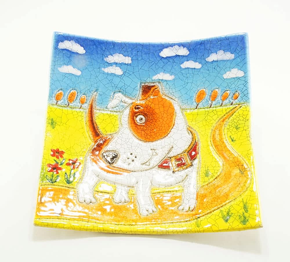 Каждое изделие ручной работы уникально, его точное воспроизведение невозможно. Поэтому, если Вас интересует две тарелки «Дружок 2» или более, они будут незначительно отличаться друг от друга.
